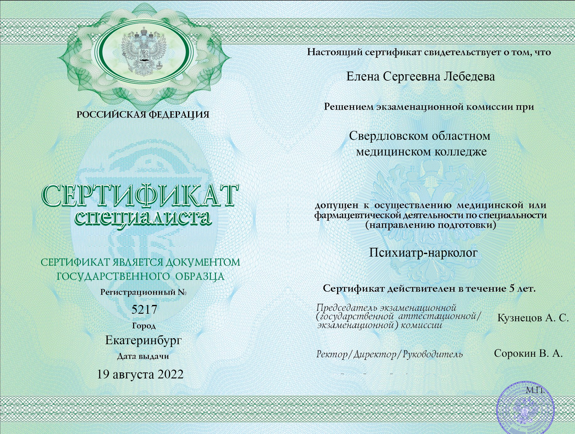 Елена Сергеевна Лебедева врач нарколог клиники доктора Стукаловой в Торецке